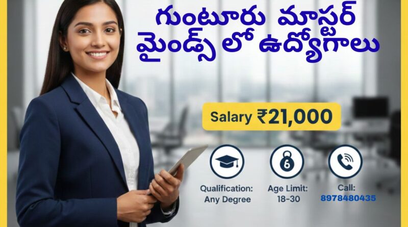 Read Moreగుంటూరు ప్రాంతంలో స్థిరమైన జీతంతో, స్పష్టమైన బాధ్యతలతో ఉన్న ఉద్యోగాల కోసం చూస్తున్న వారికి మాస్టర్ మైండ్స్ ఎడ్యుకేషనల్ ఇన్స్టిట్యూట్ తాజాగా అనేక పోస్టులకు నోటిఫికేషన్ విడుదల